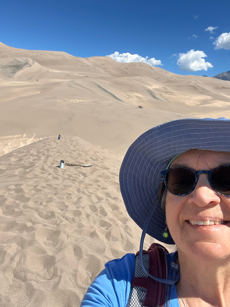 The summer of 2022, I spent two weeks at Geo-Camp with 20+ science teachers traveling through Texas, New Mexico, and Colorado. From a volcano caldera, the footwall of a fault, or a glacial valley, to a pristine flowing stream, I had a chance to observe and learn about geological processes, fluvial concepts, and some of the effects of climate change on our environment. We looked for fossils in ancient buttes, saw the K-PG boundary- a thin layer of material marking the mass dinosaur extinction, 66 million years ago, and slid down dunes at the Great Sand Dunes National Park. I toured a gold mine, explored caverns, and soaked in a hot spring. I saw great-horned sheep, marmots, lizards, pikas, and elk, and lots and lots of rocks. A few I lugged home. Now can I please be a geologist, too?