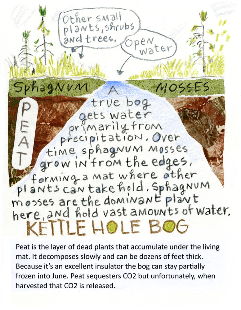 An 8 page, 4.25″ x 5.5″ illustrated zine about the geology/formation of, and plants found in a kettle hole bog.